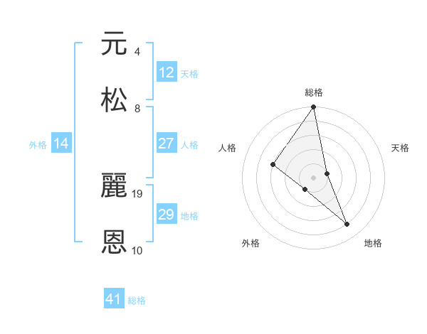 元松 麗恩さんの天格は12画の1点!