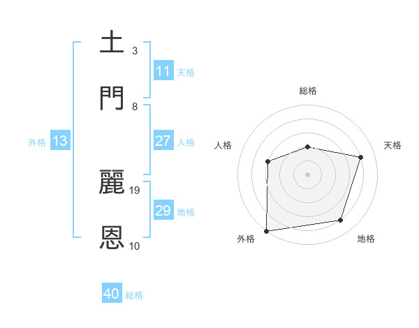 土門 麗恩さんを姓名の画数から五運を鑑定