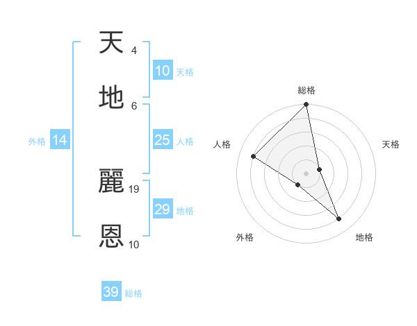 天地 麗恩さんを姓名の画数から五運を鑑定
