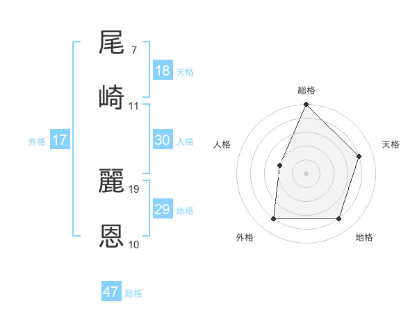 尾崎 麗恩さんの総格は47画の5点!