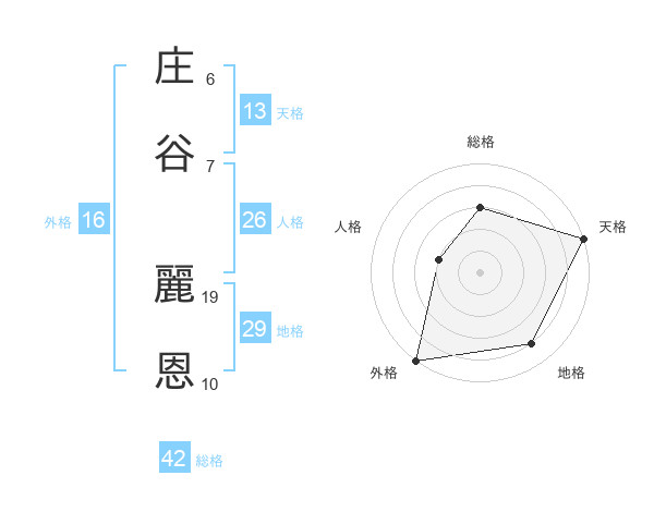 庄谷 麗恩さんを姓名の画数から五運を鑑定