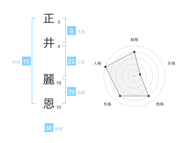 正井 麗恩さんの総格は38画の4点!