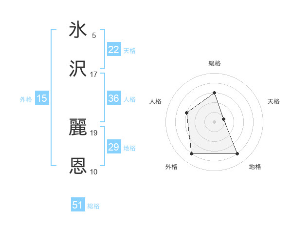 氷沢 麗恩さんを姓名の画数から五運を鑑定