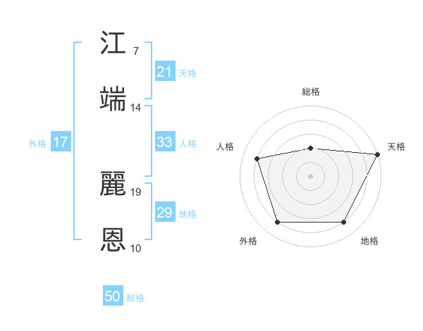 江端 麗恩さんを姓名の画数から五運を鑑定