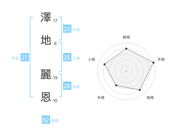 澤地 麗恩さんを姓名の画数から五運を鑑定