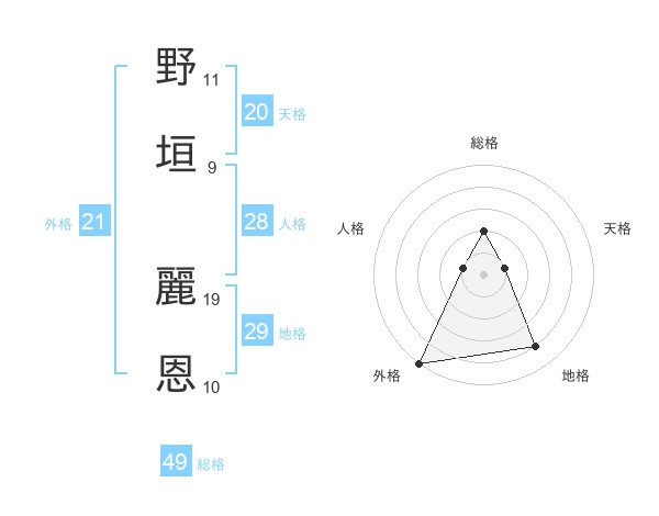野垣 麗恩さんを姓名の画数から五運を鑑定
