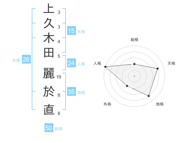 上久木田 麗於直さんを姓名の画数から五運を鑑定
