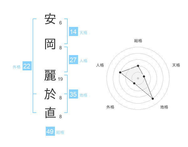 安岡 麗於直さんを姓名の画数から五運を鑑定
