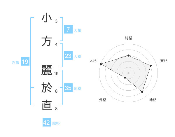 小方 麗於直さんを姓名の画数から五運を鑑定