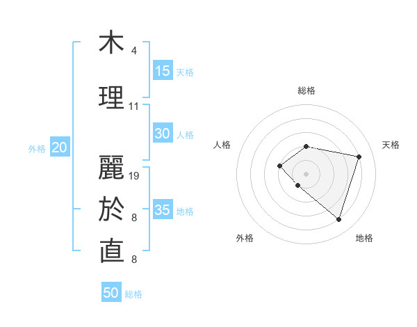 木理 麗於直さんを姓名の画数から五運を鑑定