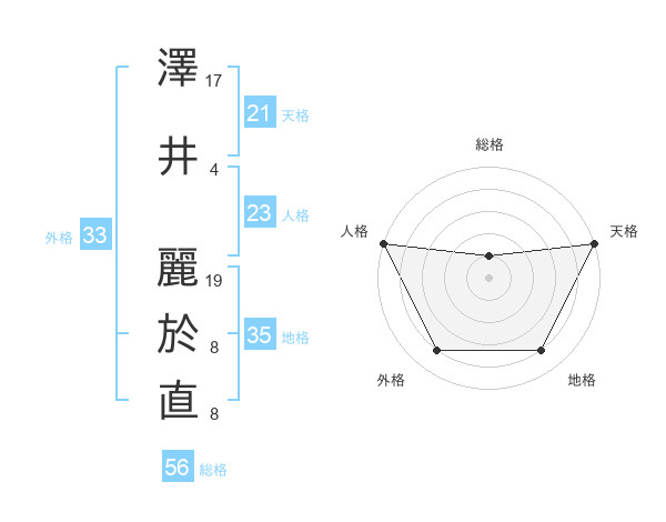 澤井 麗於直さんを姓名の画数から五運を鑑定