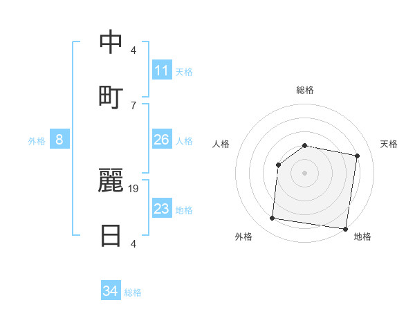 中町 麗日さんの総格は34画の2点!