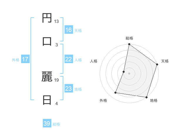 円口 麗日さんの総格は39画の5点!