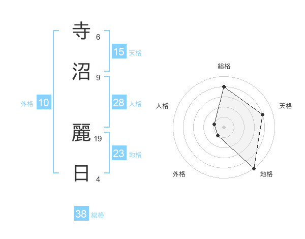 寺沼 麗日さんを姓名の画数から五運を鑑定