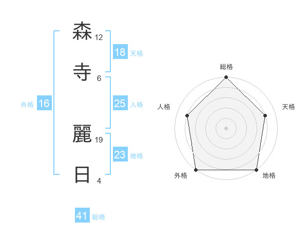 森寺 麗日さんの総格は41画の5点!