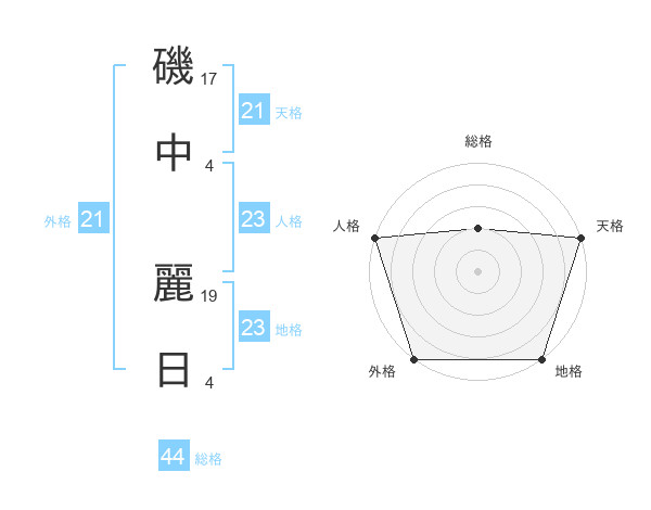 磯中 麗日さんの外格は21画の5点!