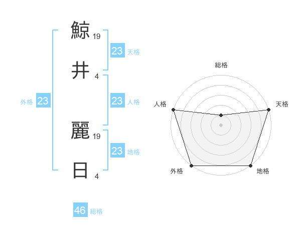 鯨井 麗日さんを姓名の画数から五運を鑑定