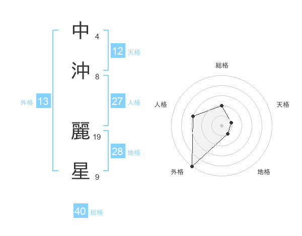 中沖 麗星さんを姓名の画数から五運を鑑定