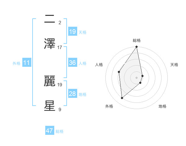二澤 麗星さんを姓名の画数から五運を鑑定