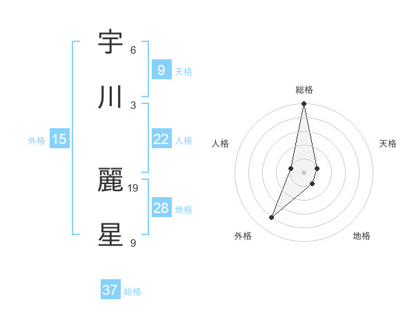 宇川 麗星さんを姓名の画数から五運を鑑定