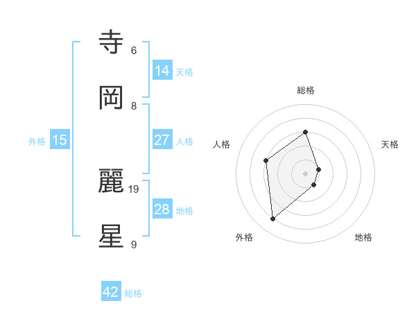 寺岡 麗星さんの総格は42画の3点!