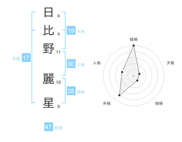 日比野 麗星さんを姓名の画数から五運を鑑定