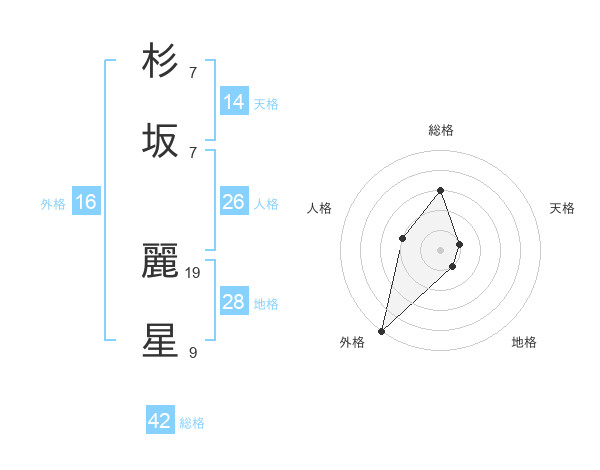 杉坂 麗星さんの総格は42画の3点!