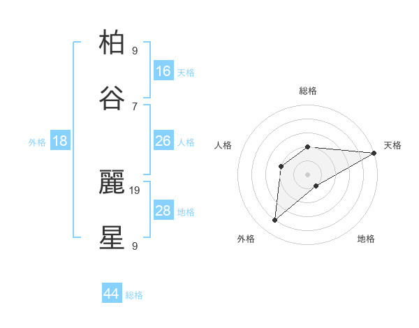 柏谷 麗星さんの天格は16画の5点!