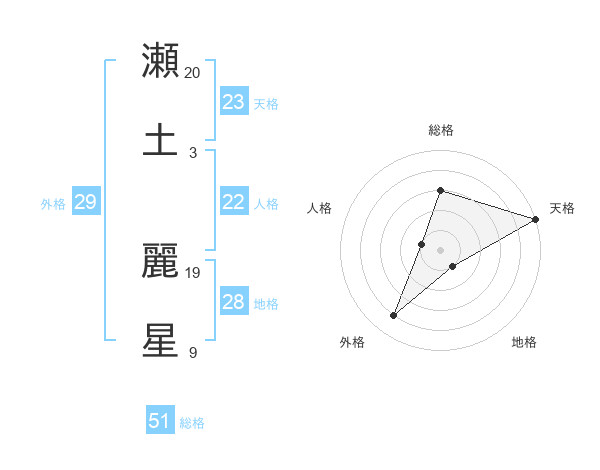 瀬土 麗星さんの総格は51画の3点!