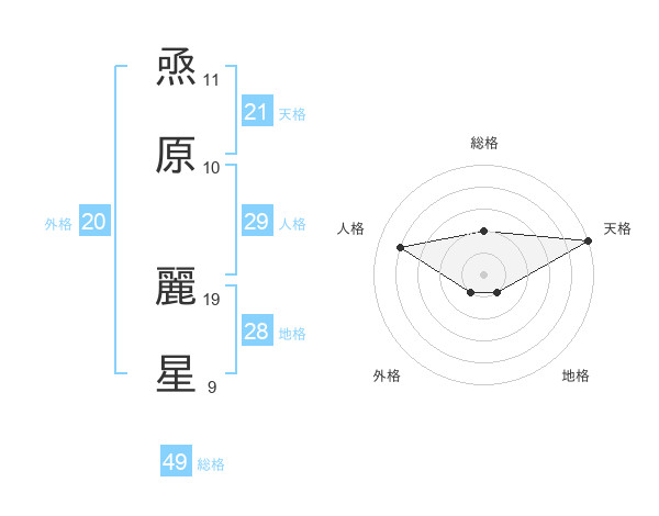 焏原 麗星さんの天格は21画の5点!