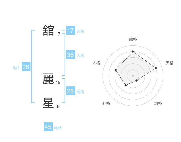 舘 麗星さんの総格は45画の4点!
