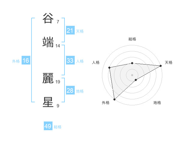谷端 麗星さんの天格は21画の5点!