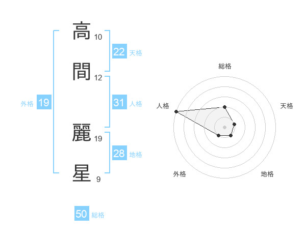 高間 麗星さんの総格は50画の2点!