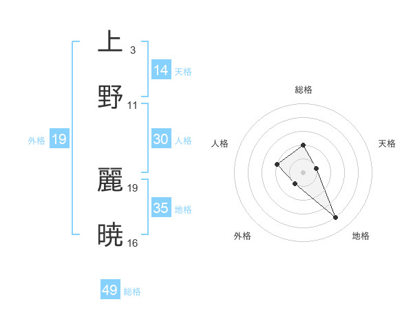 上野 麗暁さんの総格は49画の2点!