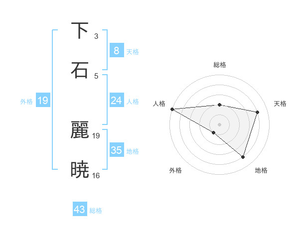 下石 麗暁さんの総格は43画の2点!