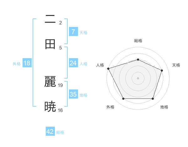 二田 麗暁さんを姓名の画数から五運を鑑定