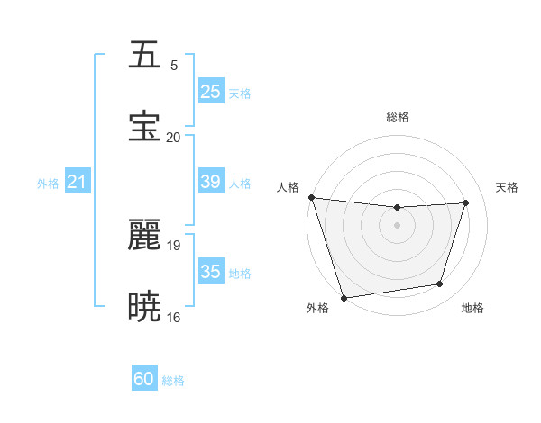 五宝 麗暁さんの総格は60画の1点!