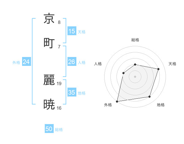 京町 麗暁さんを姓名の画数から五運を鑑定