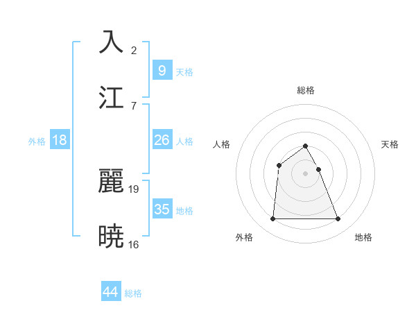 入江 麗暁さんを姓名の画数から五運を鑑定