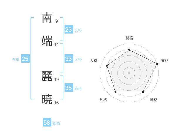 南端 麗暁さんの天格は23画の5点!