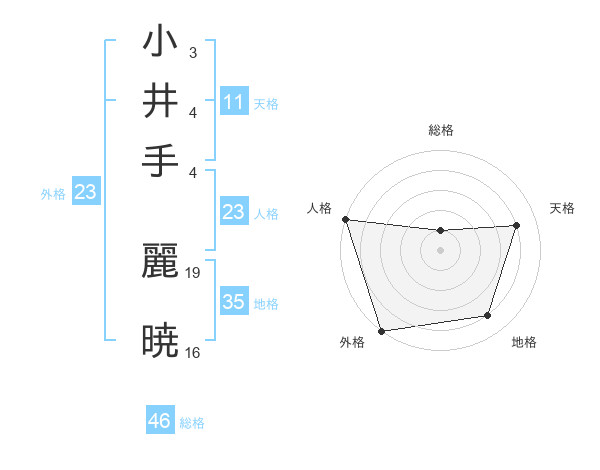 小井手 麗暁さんを姓名の画数から五運を鑑定