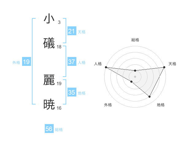 小礒 麗暁さんの外格は19画の1点!