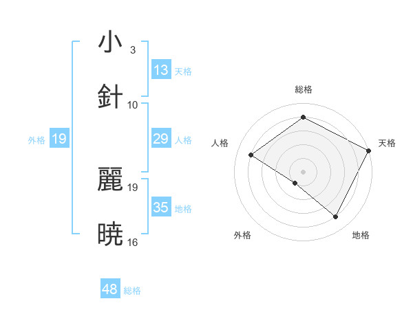 小針 麗暁さんを姓名の画数から五運を鑑定