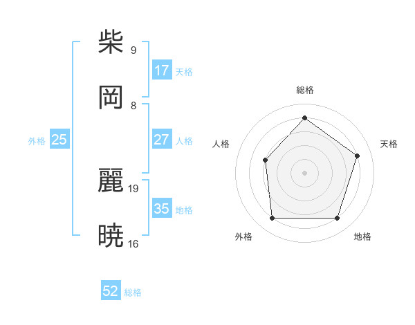 柴岡 麗暁さんの総格は52画の4点!