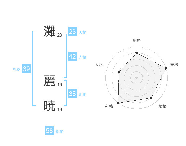灘 麗暁さんの総格は58画の4点!