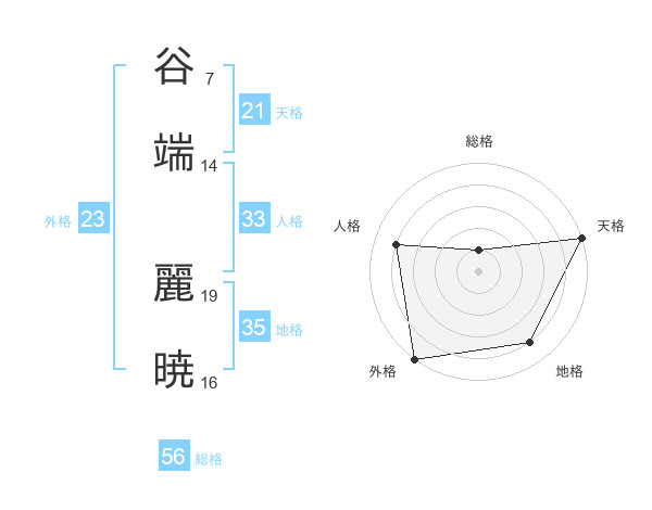 谷端 麗暁さんの外格は23画の5点!