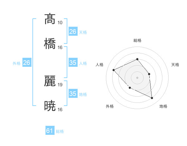 髙橋 麗暁さんを姓名の画数から五運を鑑定