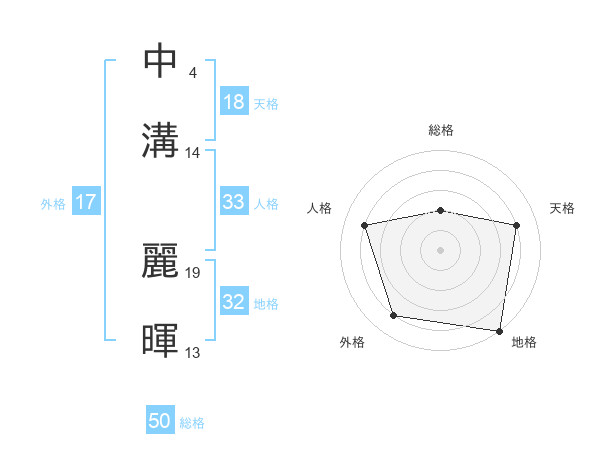 中溝 麗暉さんの総格は50画の2点!