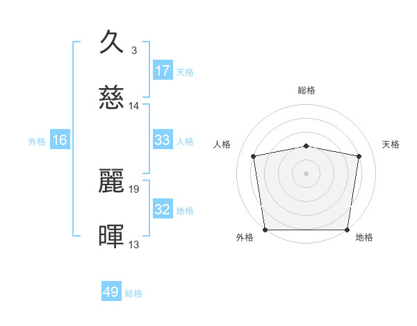 久慈 麗暉さんを姓名の画数から五運を鑑定