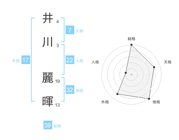 井川 麗暉さんを姓名の画数から五運を鑑定